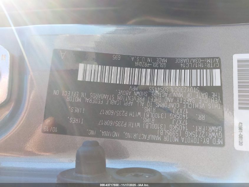2020 TOYOTA SIENNA 2020 року Бензин, 3.5, Передній привід, vin - 5TDYZ3DC1LS054455 з США