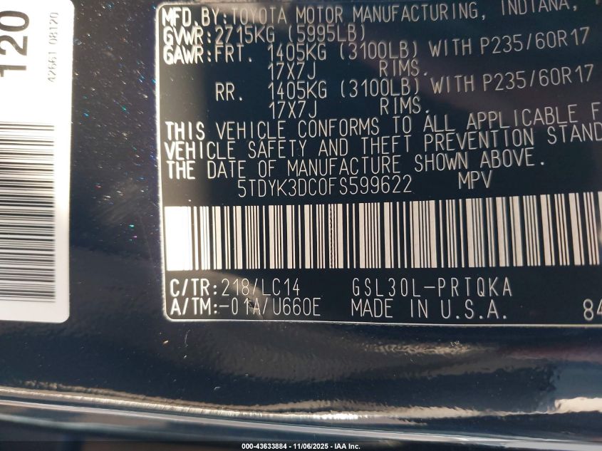 Колір ЧорнийЦиліндри 6Привід Передній привідVIN 5TDYK3DC0FS599622Стан СтаціонарноУшкодження Передня або задня AutoRIA