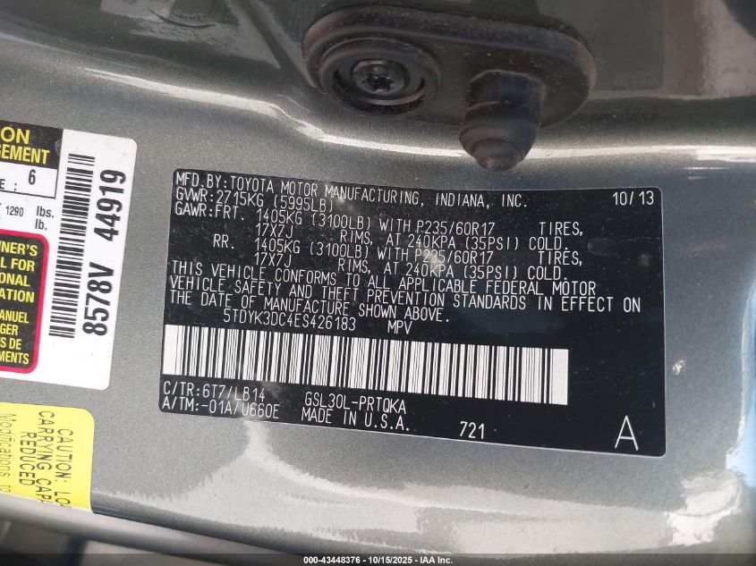 2014 TOYOTA SIENNA 2014 року Бензин, 3.5, Передній привід, vin - 5TDYK3DC4ES426183 з США