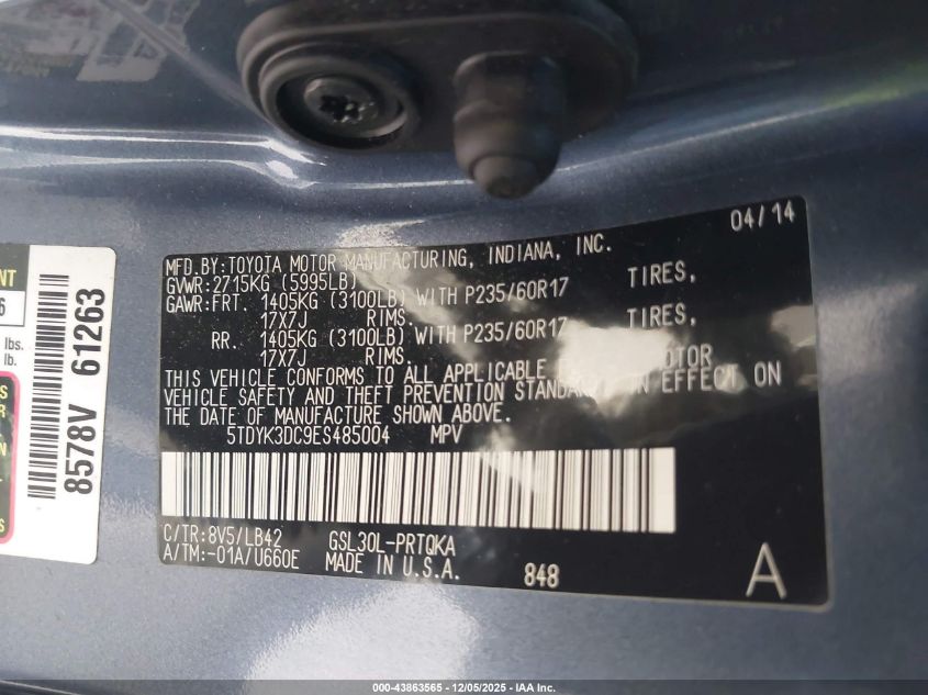 2014 TOYOTA SIENNA 2014 року Бензин, 3.5, Передній привід, vin - 5TDYK3DC9ES485004 з США