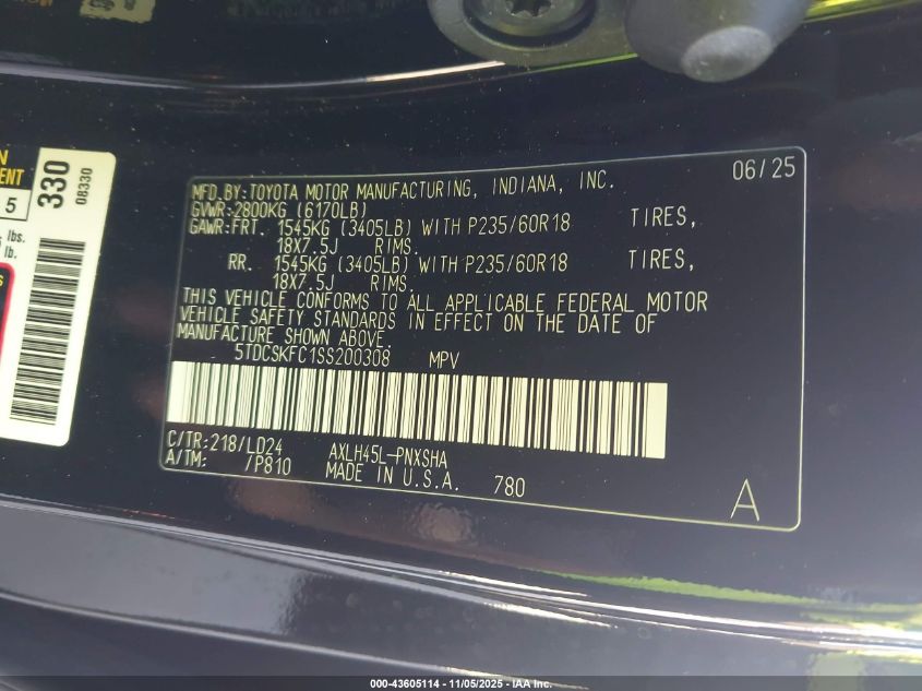 2025 TOYOTA SIENNA 2025 року Гібрид, 2.5, Повний привід, vin - 5TDCSKFC1SS200308 з США