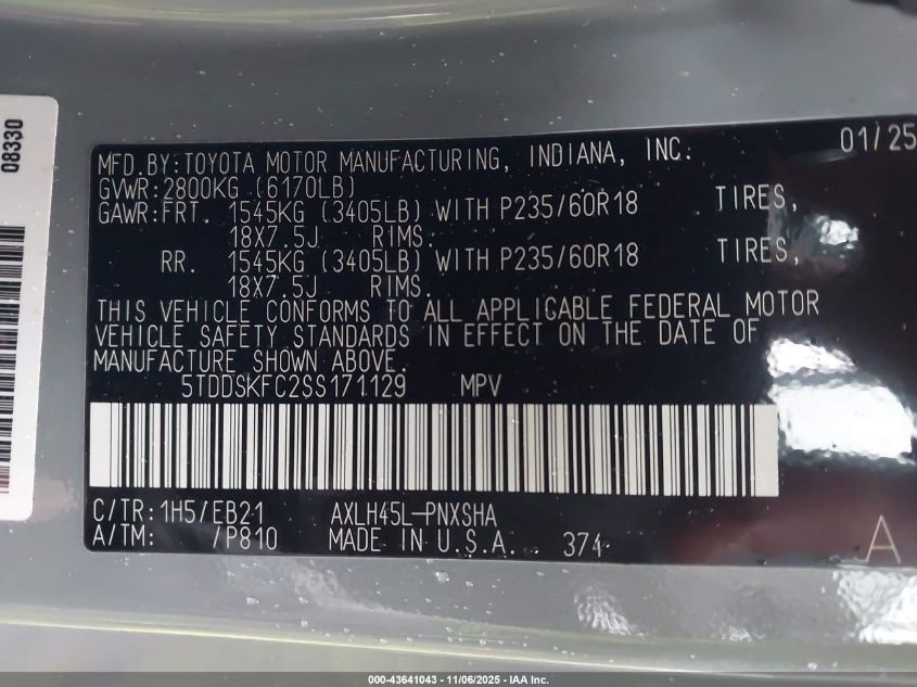 2025 TOYOTA SIENNA 2025 року Гібрид, 2.5, Повний привід, vin - 5TDDSKFC2SS171129 з США