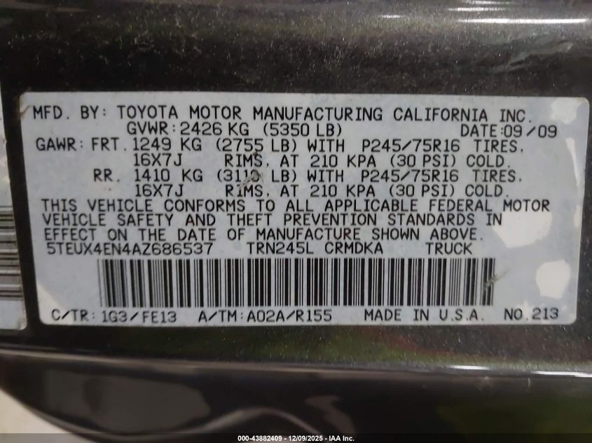 2010 TOYOTA TACOMA 2010 року Бензин, 2.7, Повний привід, vin - 5TEUX4EN4AZ686537 з США