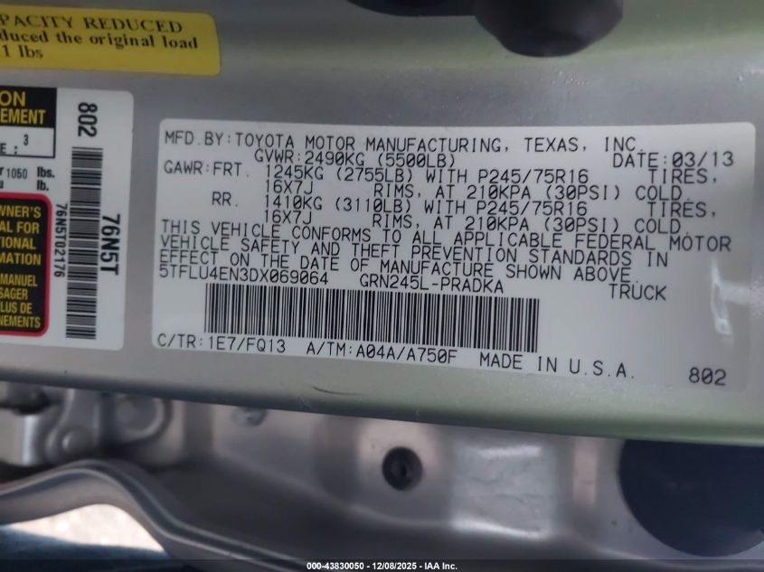 2013 TOYOTA TACOMA 2013 року Бензин, 4.0, Повний привід, vin - 5TFLU4EN3DX069064 з США