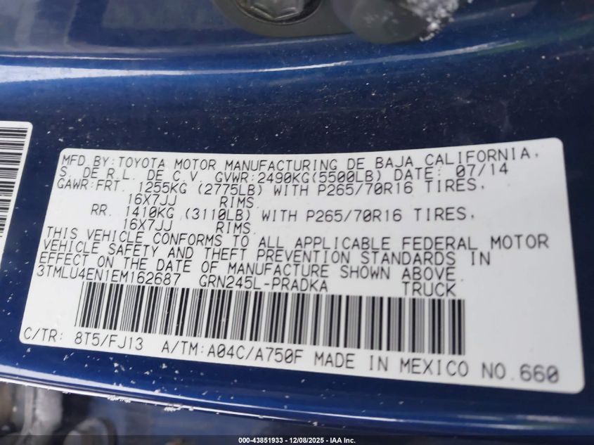 2014 TOYOTA TACOMA 2014 року Бензин, 4.0, Повний привід, vin - 3TMLU4EN1EM162687 з США
