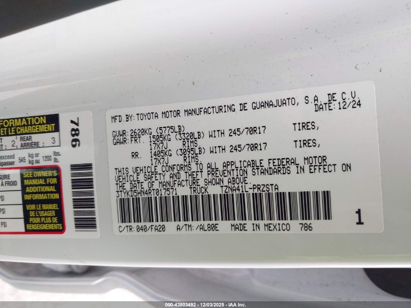 2024 TOYOTA TACOMA 2024 року Бензин, 2.4, , vin - 3TYKD5HN4RT017571 з США