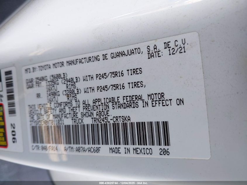 Колір БілийЦиліндри 4Привід Повний привідVIN 3TYSX5EN0NT011031Стан Заводиться та їде (перевірено)Ушкодження Передня або задня AutoRIA