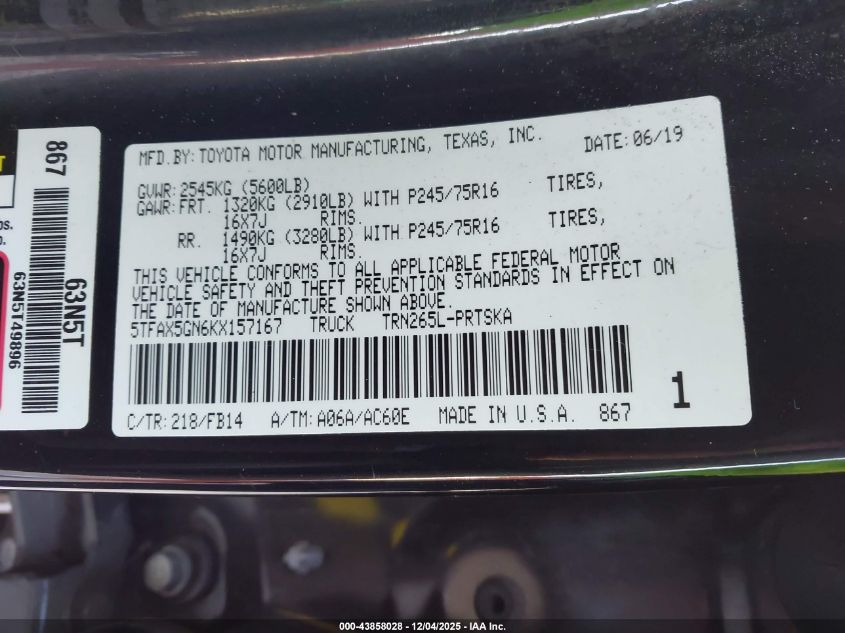 2019 TOYOTA TACOMA 2019 року Бензин, 2.7, , vin - 5TFAX5GN6KX157167 з США