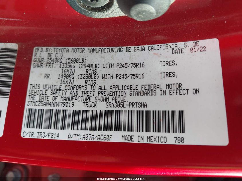 2022 TOYOTA TACOMA 2022 року Бензин, 3.5, Повний привід, vin - 3TMCZ5AN4NM479019 з США