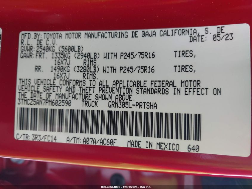 2023 TOYOTA TACOMA 2023 року Бензин, 3.5, Повний привід, vin - 3TMCZ5AN7PM602590 з США