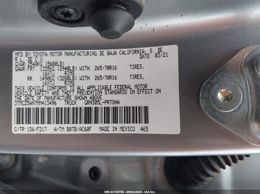 2021 TOYOTA TACOMA 2021 року Бензин, 3.5, Повний привід, vin - 3TMCZ5AN7MM413496 з США