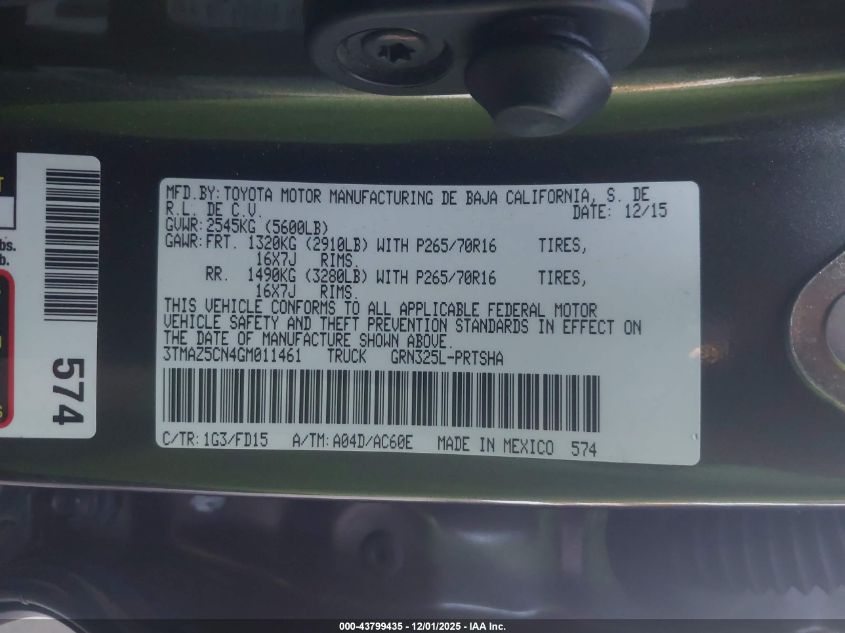 2016 TOYOTA TACOMA 2016 року Бензин, 3.5, , vin - 3TMAZ5CN4GM011461 з США