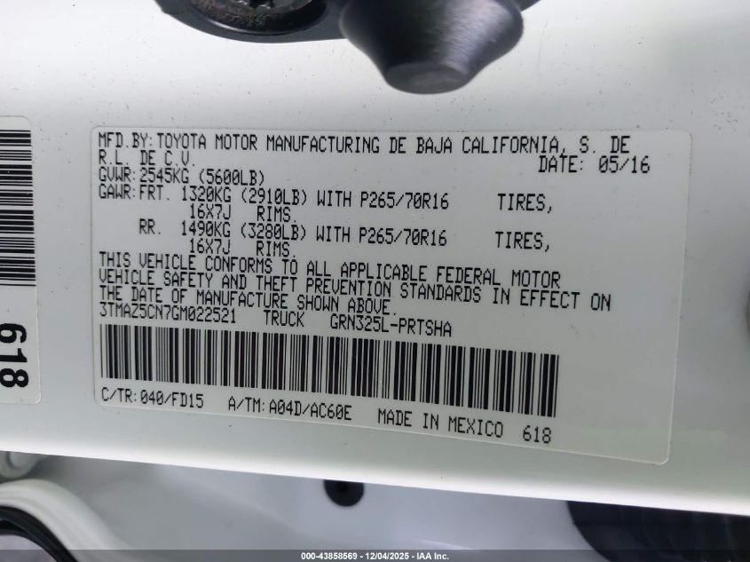 2016 TOYOTA TACOMA 2016 року Бензин, 3.5, , vin - 3TMAZ5CN7GM022521 з США