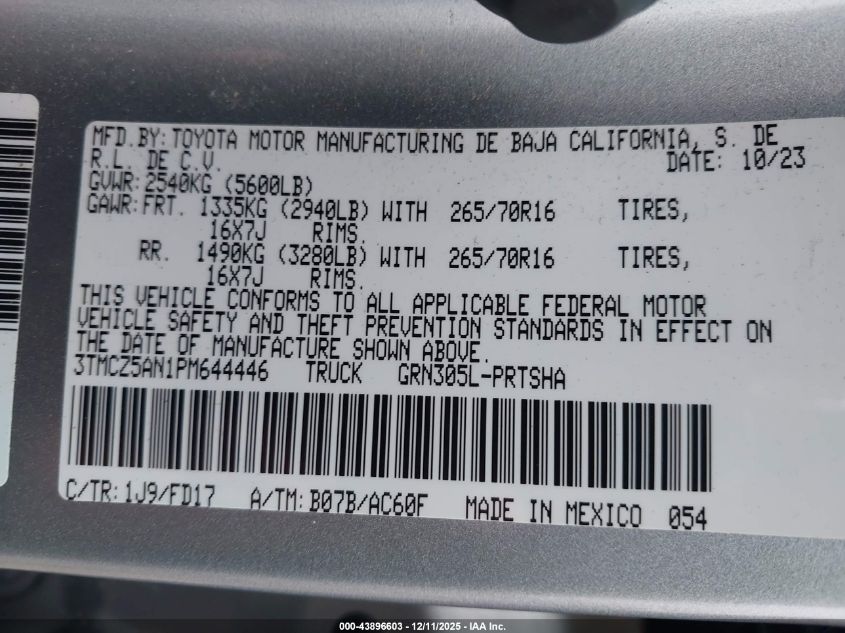 2023 TOYOTA TACOMA 2023 року Бензин, 3.5, Повний привід, vin - 3TMCZ5AN1PM644446 з США