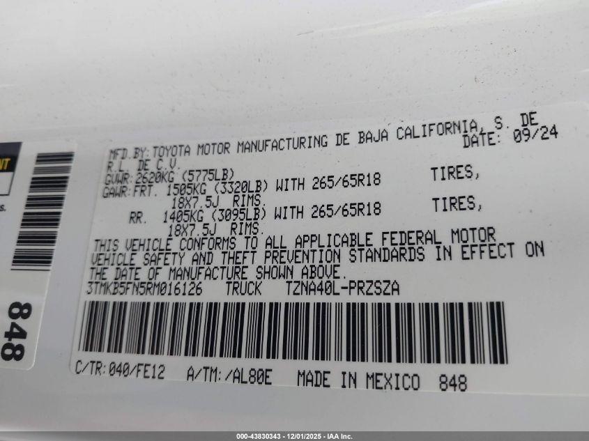 2024 TOYOTA TACOMA 2024 року Бензин, 2.4, , vin - 3TMKB5FN5RM016126 з США