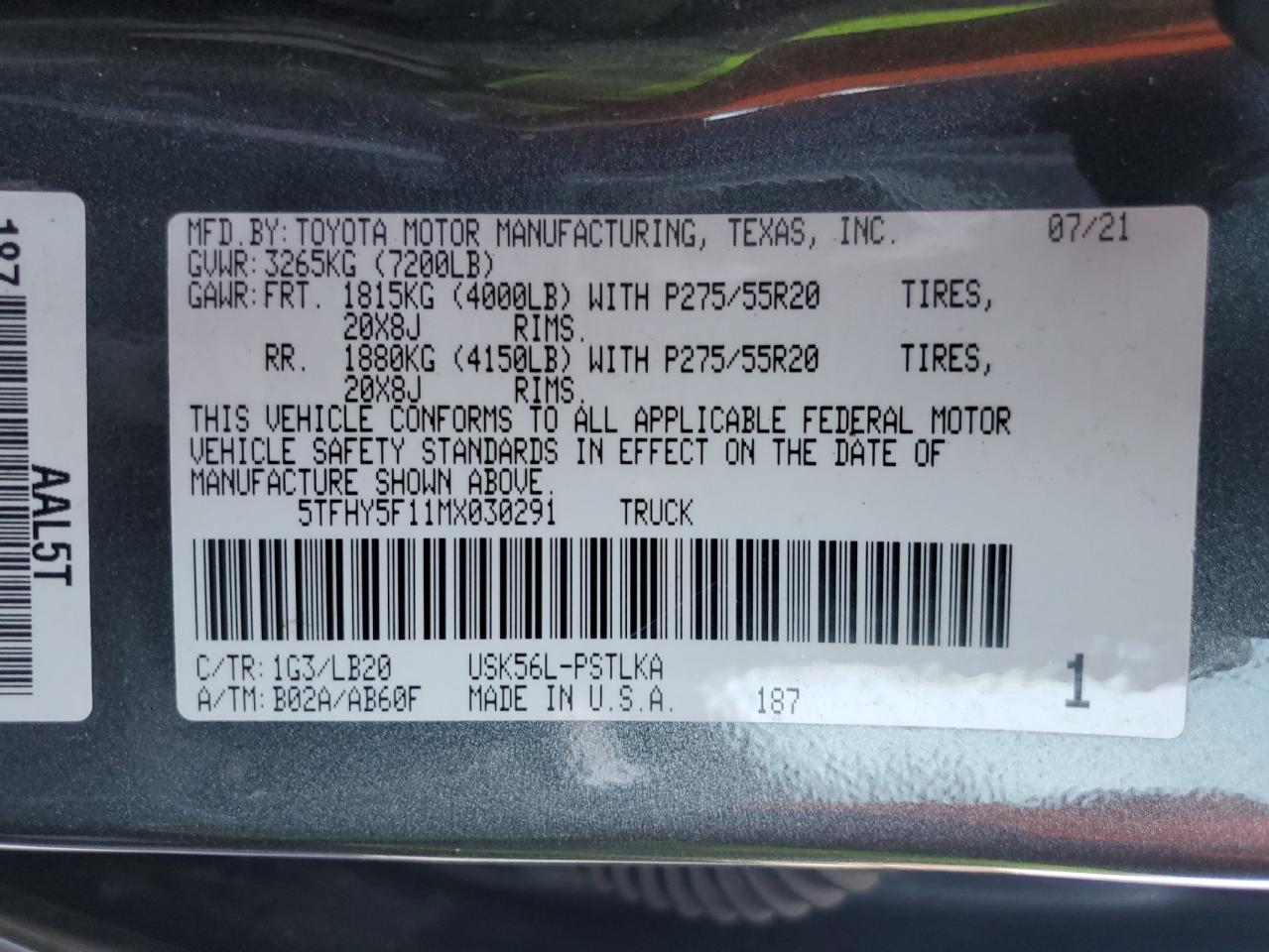 2021 TOYOTA TUNDRA 2021 року Бензин, 5.7, 4x4 з заднім приводом, vin - 5TFHY5F11MX030291 з США