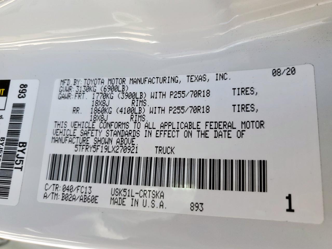 2020 TOYOTA TUNDRA 2020 року Бензин, 5.7, Задній привід, vin - 5TFRY5F19LX270921 з США