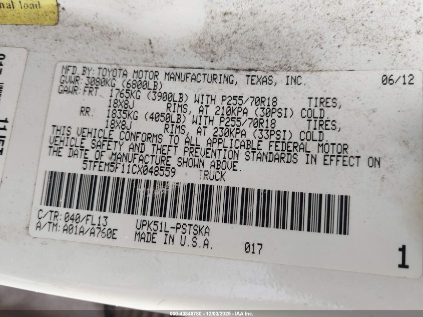 2012 TOYOTA TUNDRA DOUBLE CAB SR5