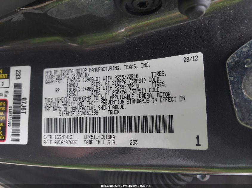 2012 TOYOTA TUNDRA DOUBLE CAB SR5