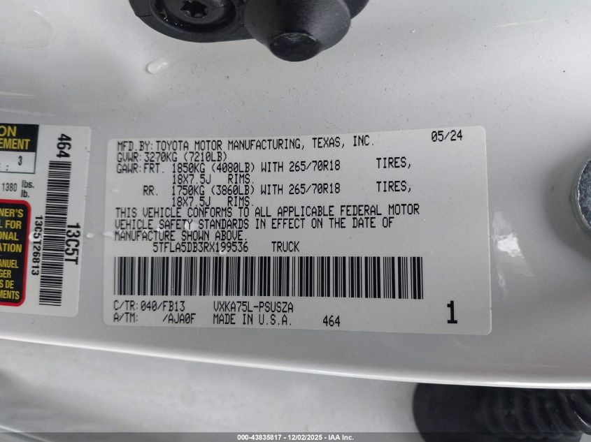 2024 TOYOTA TUNDRA 2024 року Бензин, 3.4, Повний привід, vin - 5TFLA5DB3RX199536 з США