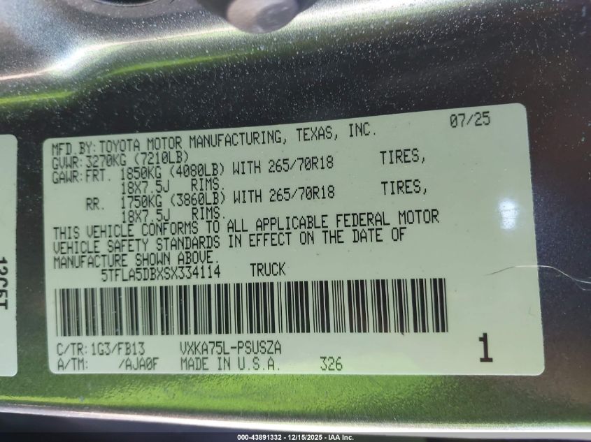 2025 TOYOTA TUNDRA 2025 року Бензин, 3.4, Повний привід, vin - 5TFLA5DBXSX334114 з США