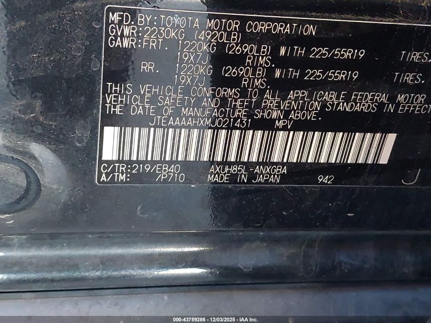 2021 TOYOTA VENZA 2021 року Гібрид, 2.5, Повний привід, vin - JTEAAAAHXMJ021431 з США
