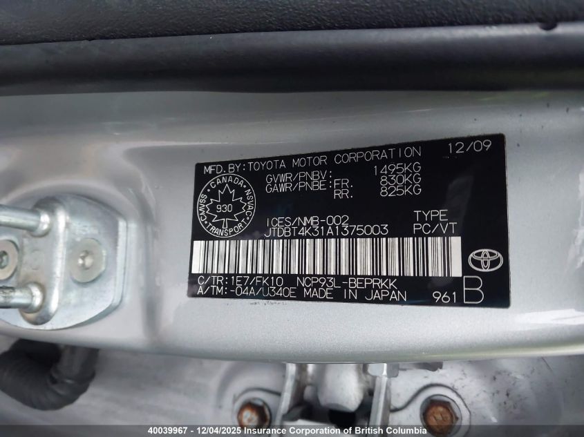 Колір СірийЦиліндри 4Привід Передній привідVIN JTDBT4K31A1375003Стан Заводиться та їде (перевірено)Ушкодження ПередняДата аукціону 2025-12-08