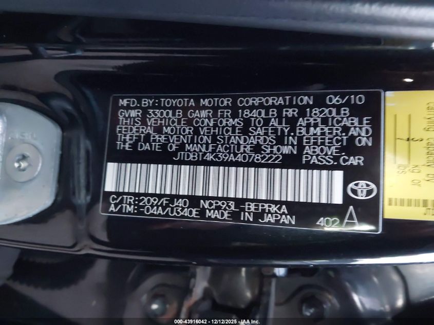 Колір ЧорнийЦиліндри 4Привід Передній привідVIN JTDBT4K39A4078222Стан Заводиться та їде (перевірено)Ушкодження Ліва сторона AutoRIA