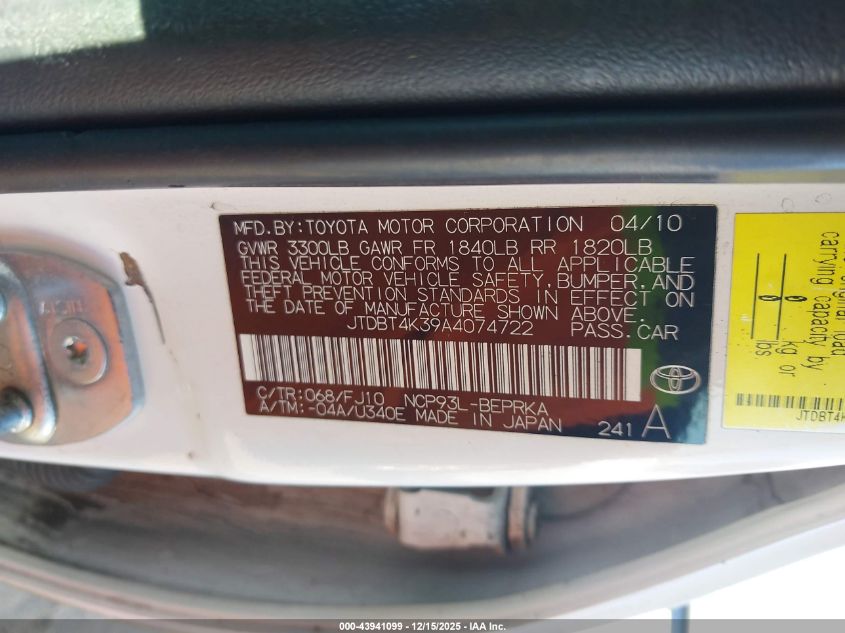 Колір БілийЦиліндри 4Привід Передній привідVIN JTDBT4K39A4074722Стан ЗаводитьсяУшкодження Передня або задня AutoRIA