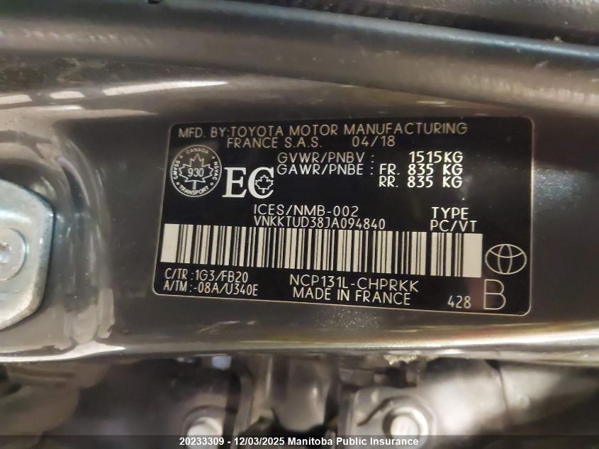 2018 TOYOTA YARIS 2018 року Бензин, , Передній привід, vin - VNKKTUD38JA094840 з США