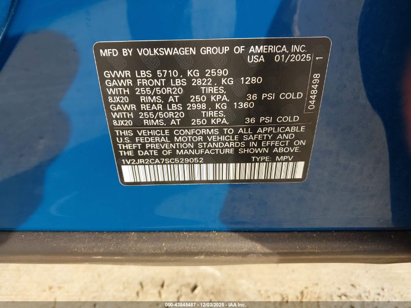 2025 VOLKSWAGEN ATLAS 2025 року Бензин, 2.0, Передній привід, vin - 1V2JR2CA7SC529052 з США