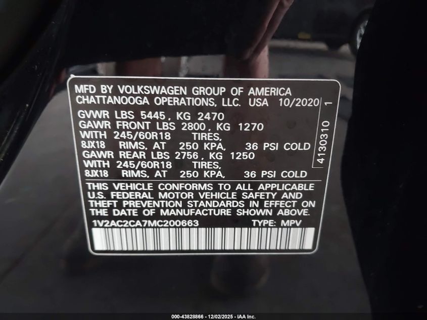 2021 VOLKSWAGEN ATLAS CROSS SPORT 2021 року Бензин, 2.0, Передній привід, vin - 1V2AC2CA7MC200663 з США