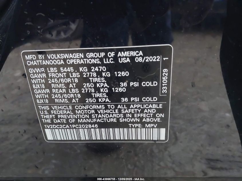 2023 VOLKSWAGEN ATLAS CROSS SPORT 2023 року Бензин, 2.0, Передній привід, vin - 1V2DC2CA1PC202846 з США