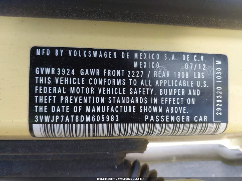 2013 VOLKSWAGEN BEETLE 2013 року Бензин, 2.5, Передній привід, vin - 3VWJP7AT8DM605983 з США