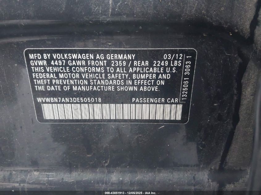 2013 VOLKSWAGEN CC 2013 року Бензин, 2.0, Передній привід, vin - WVWBN7AN3DE505018 з США