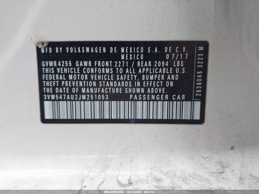 2018 VOLKSWAGEN GOLF GTI 2018 року Бензин, 2.0, Передній привід, vin - 3VW547AU2JM251053 з США