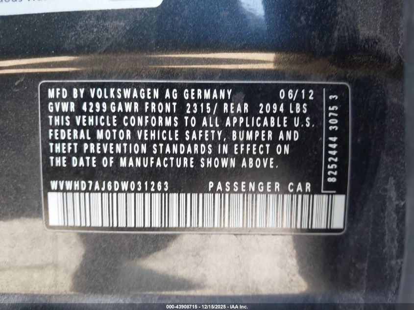 2013 VOLKSWAGEN GOLF GTI 2013 року Бензин, 2.0, Передній привід, vin - WVWHD7AJ6DW031263 з США