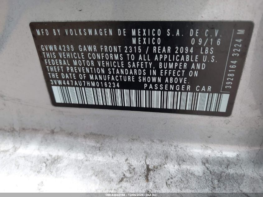 2017 VOLKSWAGEN GOLF GTI 2017 року Бензин, 2.0, Передній привід, vin - 3VW447AU7HM016234 з США