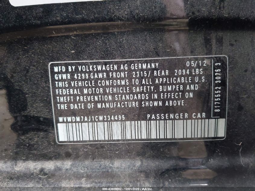 2012 VOLKSWAGEN GOLF