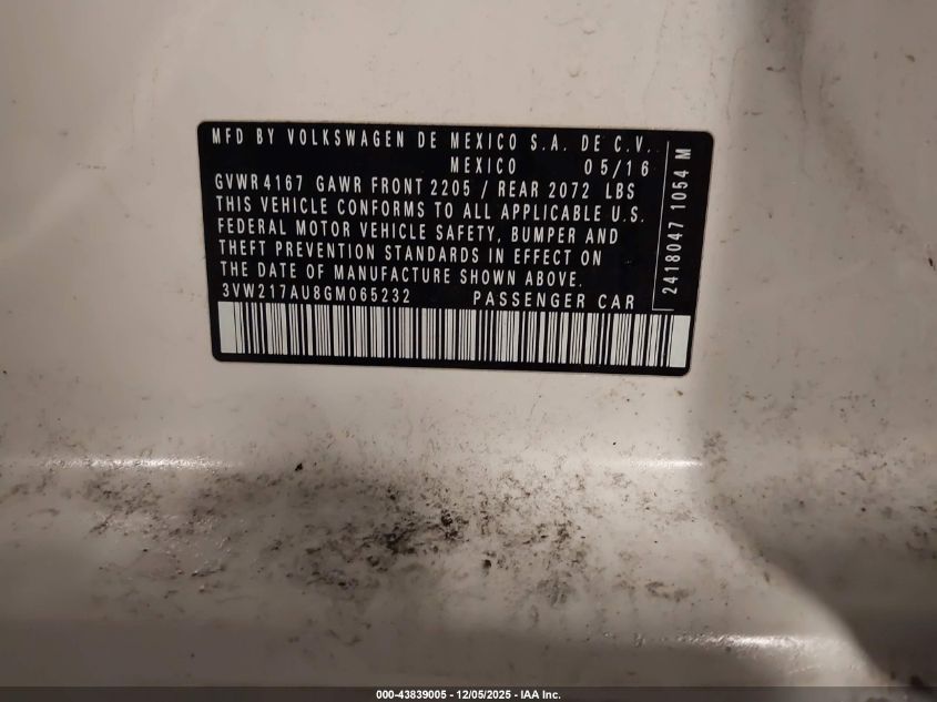 2016 VOLKSWAGEN GOLF S/SE