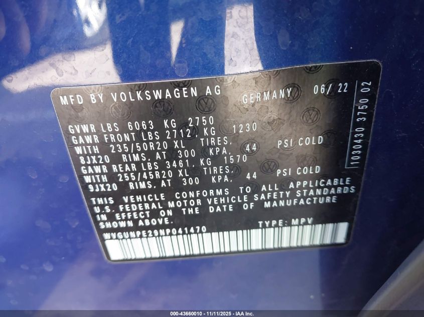2022 VOLKSWAGEN ID.4 2022 року Електричний, 0.0, Повний привід, vin - WVGUNPE29NP041470 з США