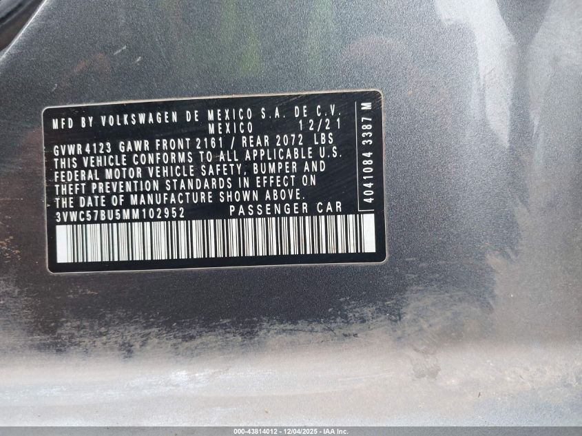 2021 VOLKSWAGEN JETTA 2021 року Бензин, 1.4, Передній привід, vin - 3VWC57BU5MM102952 з США