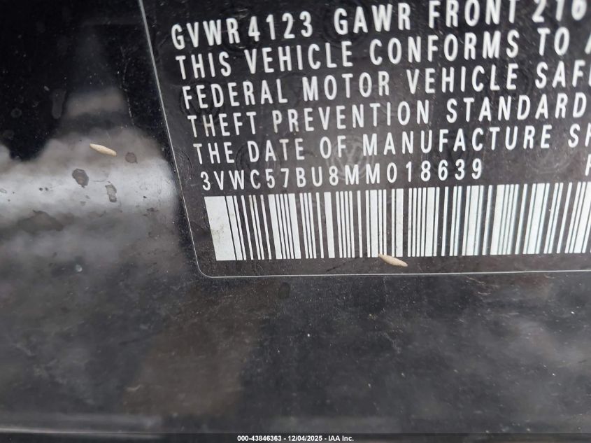 2021 VOLKSWAGEN JETTA 2021 року Бензин, 1.4, Передній привід, vin - 3VWC57BU8MM018639 з США