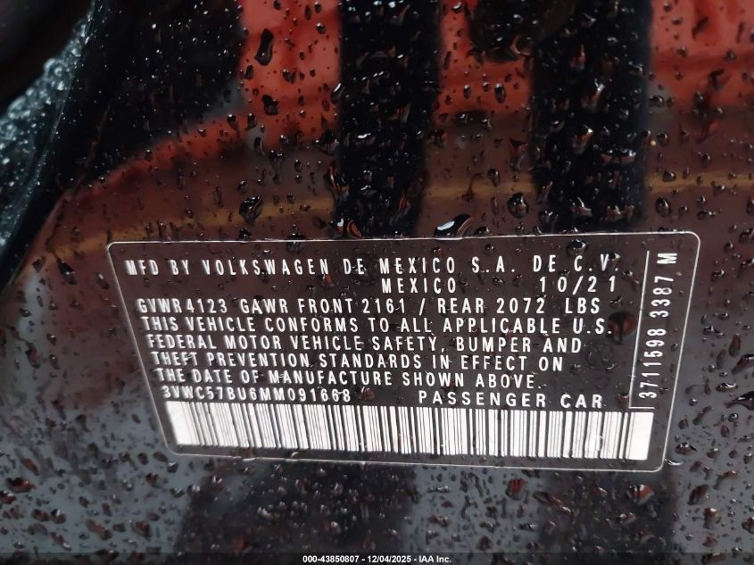 2021 VOLKSWAGEN JETTA 2021 року Бензин, 1.4, Передній привід, vin - 3VWC57BU6MM091668 з США