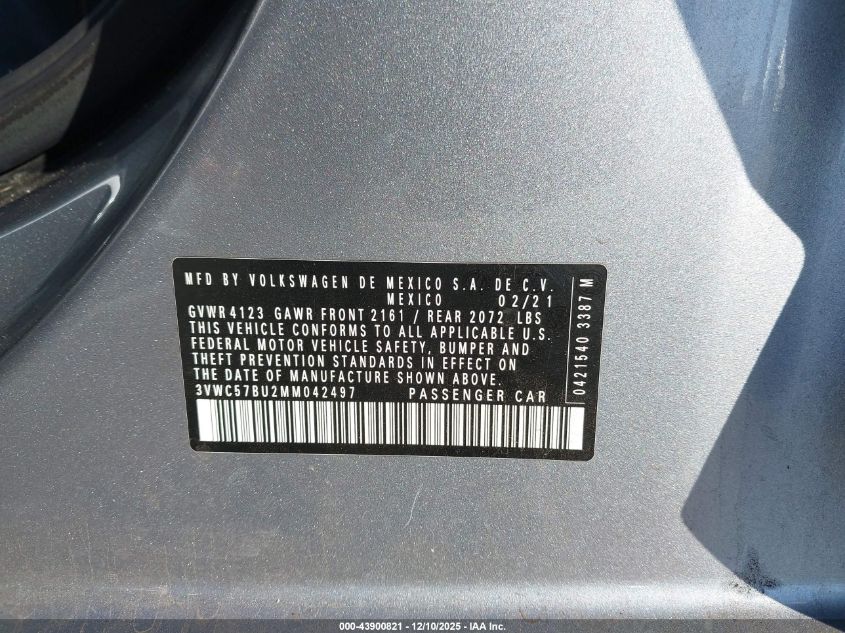 2021 VOLKSWAGEN JETTA 2021 року Бензин, 1.4, Передній привід, vin - 3VWC57BU2MM042497 з США