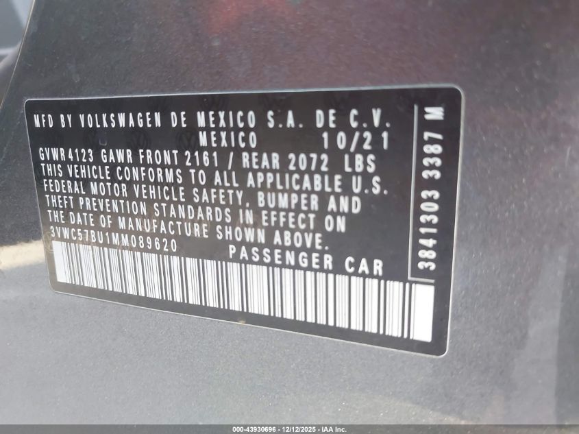 2021 VOLKSWAGEN JETTA 2021 року Бензин, 1.4, Передній привід, vin - 3VWC57BU1MM089620 з США