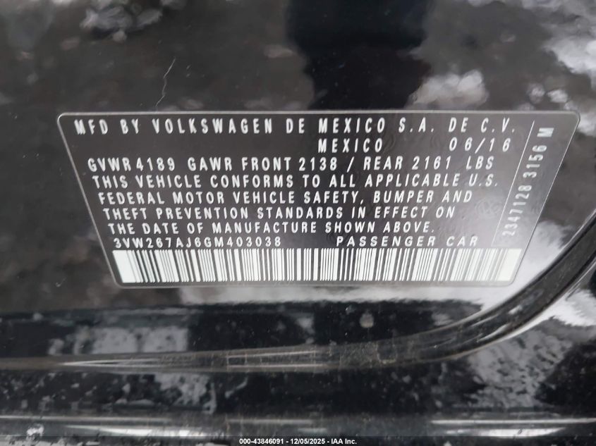 2016 VOLKSWAGEN JETTA 2016 року Бензин, 1.4, Передній привід, vin - 3VW267AJ6GM403038 з США