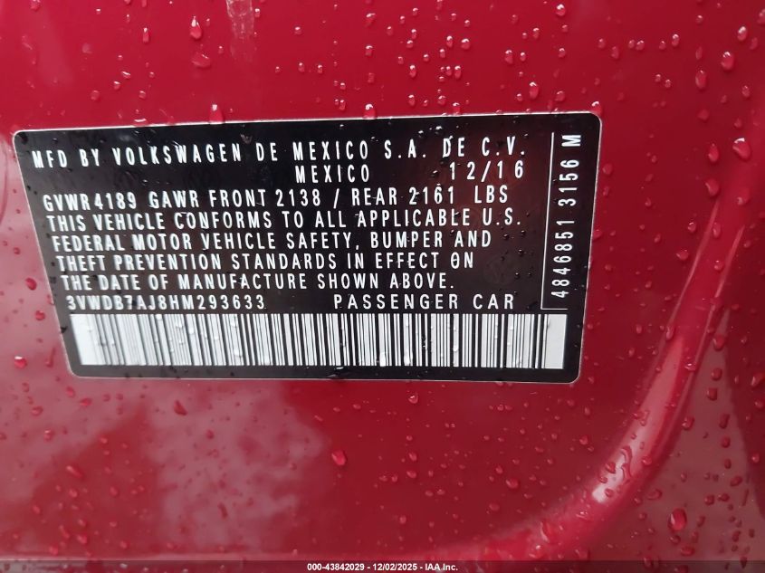 2017 VOLKSWAGEN JETTA S