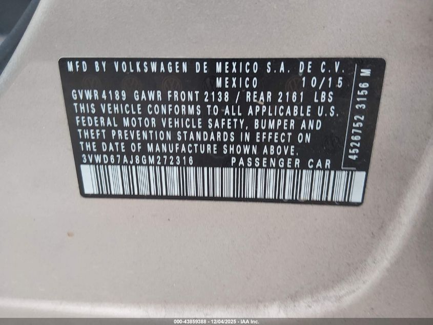 2016 VOLKSWAGEN JETTA S