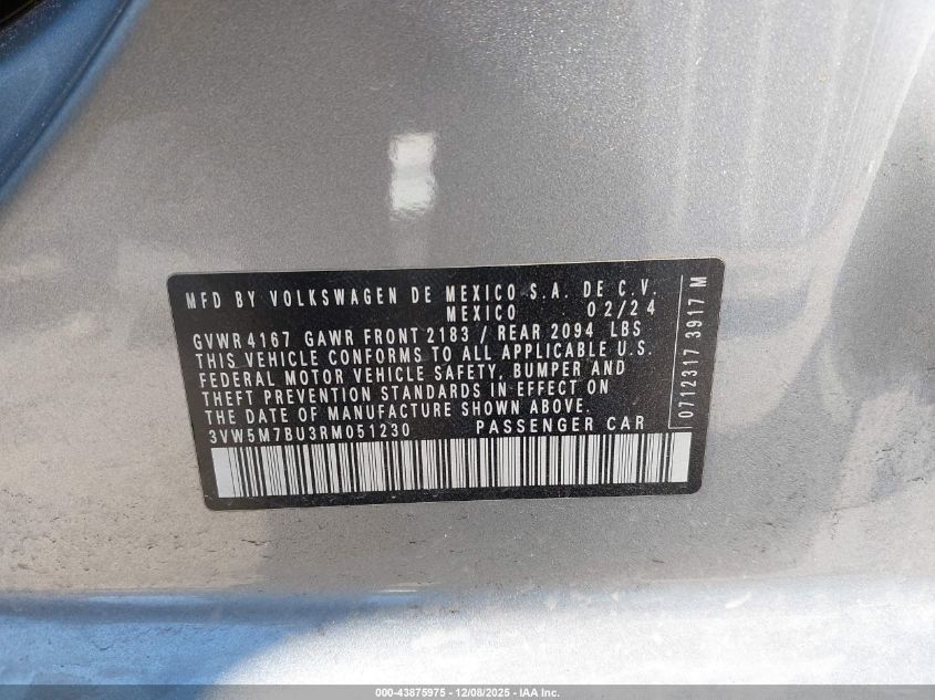 2024 VOLKSWAGEN JETTA 2024 року Бензин, 1.5, Передній привід, vin - 3VW5M7BU3RM051230 з США